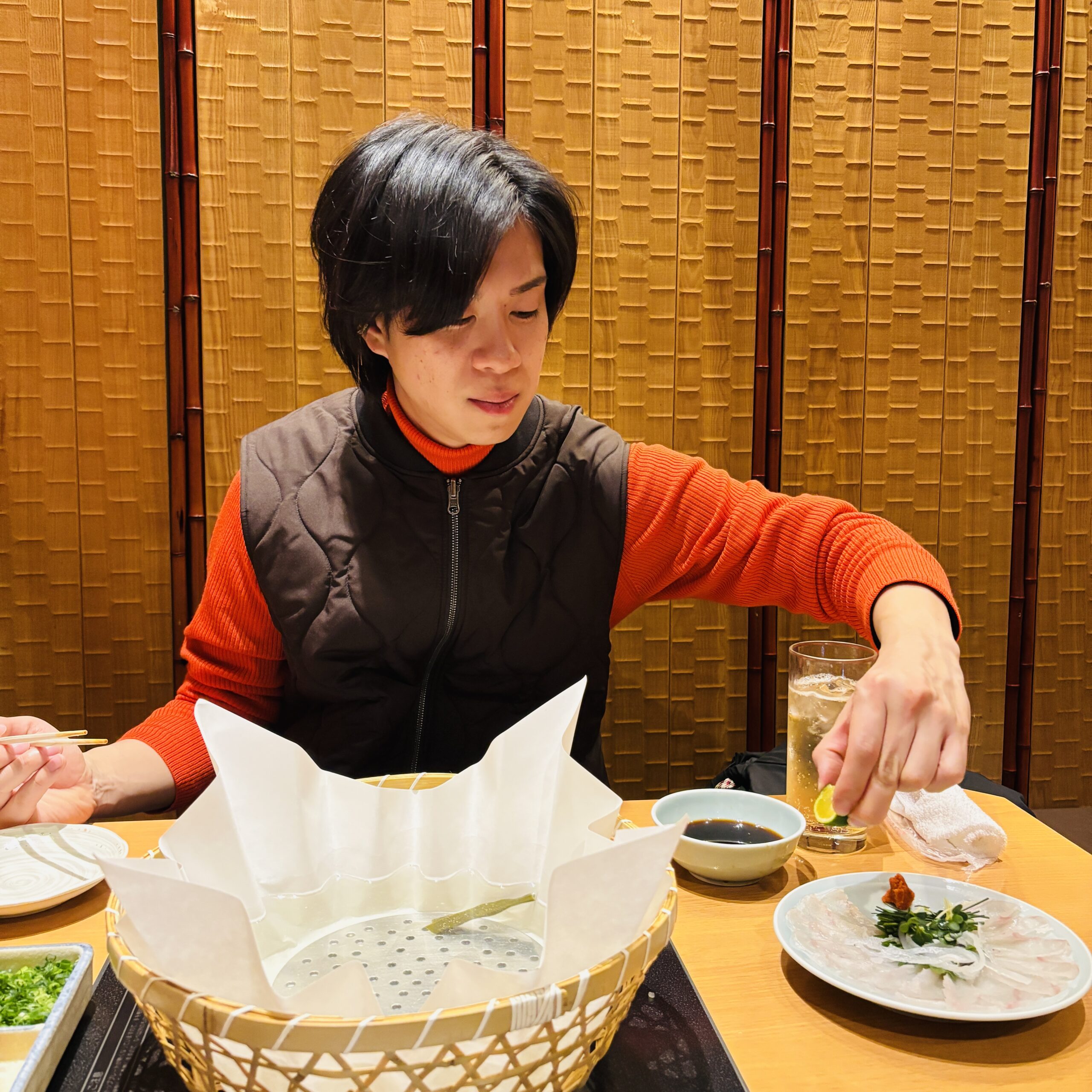 弊社の小さな忘年会 念願のふぐ料理を食べに行った時の写真